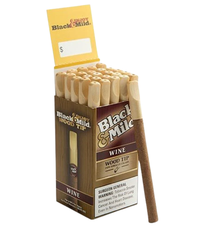 The legendary Black & Mild Wine cigars are made from a unique blend of both air-cured and pipe tobaccos. Each cigar features a plastic tip for a nice feel when smoking. The aroma from any Black & Mild cigar, makes these such a popular smoke for any adult consumer to enjoy.