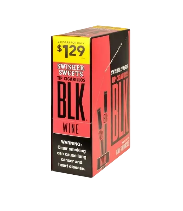 Enjoy the smooth, sweet taste of Swisher Sweets BLK Tip Cigarillos Wine. These premium cigarillos are infused with a rich wine flavor, providing a unique and satisfying smoking experience. The classic BLK tip design ensures a smooth draw, while the wine flavor adds a sweet touch to every puff.