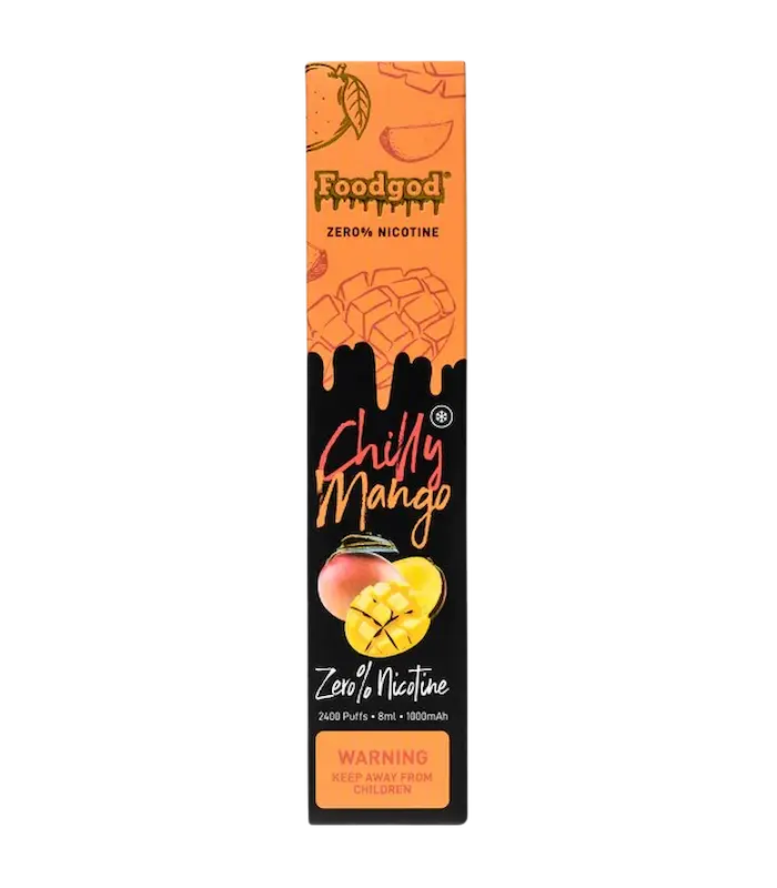 Escape to the tropics with FoodGod Chilly Mango. This 0% Nicotine Free Disposable Vape offers the invigorating taste of ripe mangoes with a cool menthol twist. With 2400+ puffs, each draw brings a refreshing burst of tropical sweetness followed by a chilling sensation, providing a perfect balance for a relaxing and flavorful vaping experience