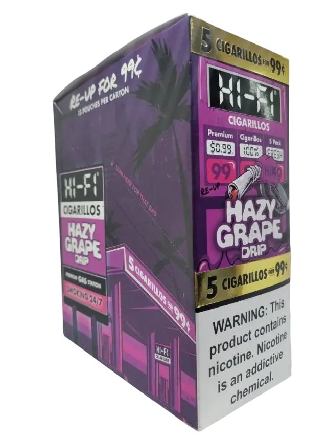 Hi-Fi cigarillos come in a carton of 15 pouches, with each pouch containing 5 meticulously crafted cigarillos. Each pouch is pre-priced at 99c.