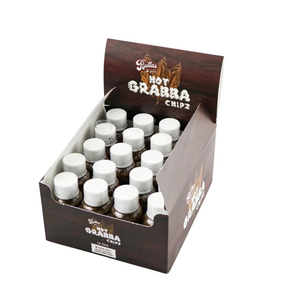 **ONE SMALL BOTTLE** This is the hottest and spiciest grabba you will ever encounter. Be careful… 100 % All Natural Tobacco With No Preservatives or Chemicals WARNING: This product contains nicotine derived from tobacco. Nicotine is an addictive chemical. Includes: 1 small bottle containing 5-6 grams of crushed Buttas Hot Grabba. What is Hot Grabba? Hot Grabba is a hand-picked tobacco leaf selected for the smoothest burn and best smoke. There are different types of tobacco leaves varying in darkness. The darker the leaf, the stronger the hit of the smoke. The Fronto leaf, for example, is a thinner and light brown tobacco leaf used usually for cigars, and as a wrap. Hot Grabba, on the other hand, is a much thicker and darker leaf, meant to be dried out and crushed into little chips. These chips are meant to be used to roll spliffs from.