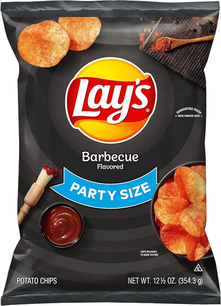 • Includes 1 (12.5oz) Party Size! bag of Lay’s Potato Chips, Barbecue flavor