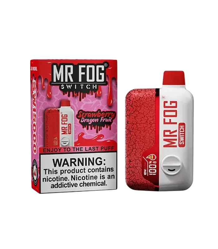 Strawberry Dragon Fruit by MR FOG SWITCH SW15000: Dive into a refreshing taste adventure with Strawberry Dragon Fruit by MR FOG SWITCH SW15000. This flavour pairs the succulent sweetness of ripe strawberries with the exotic and tangy notes of dragon fruit. Each puff delivers a luscious burst of juicy strawberries, while the dragon fruit adds a unique, undertone that is both invigorating and soothing.