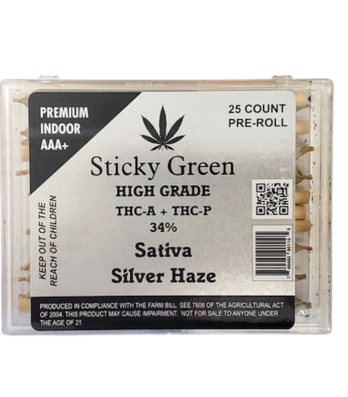 The Silver Haze is a strong Sativa that was produced by breeders at the notorious Sensi Seeds Farms by crossing the famous Skunk #1, Haze strain, and the Northern Lights #5. This musty bud is preferred by many cannabis users and has an average THC level ranging from 20-24%. This strain got its name from the strong, bright THC glands that cover the buds. This strains’ bud has long, thick, pepper-shaped vivid neon green nugs with gold and amber undertones and some stretched thin amber hairs. The nugs are covered with crystal white trichomes and have a dense layer of sticky sweet resin. It has a scent of strong earthy pine and a flavor of pungent earth with hints of sweet pine as you exhale.